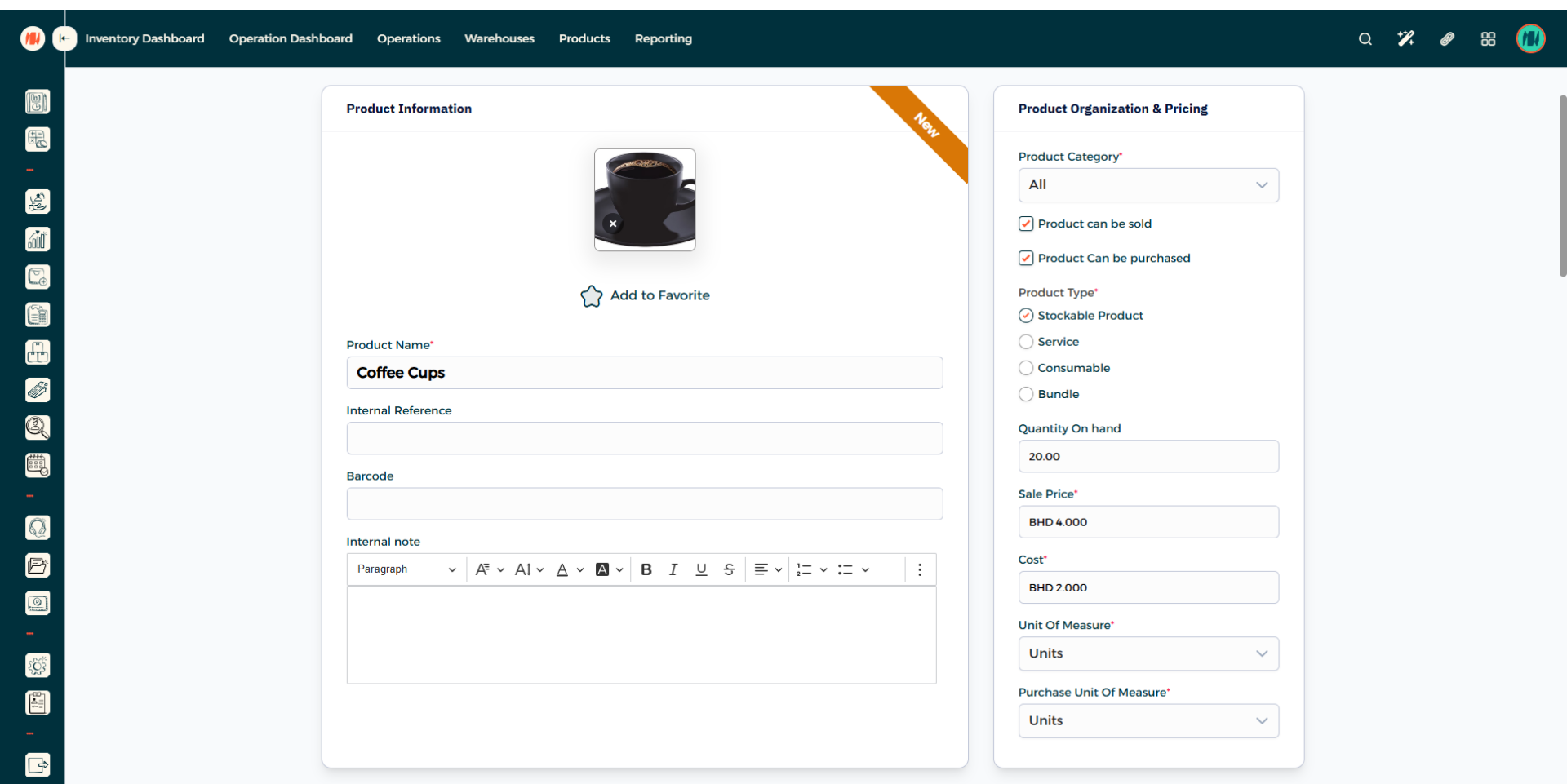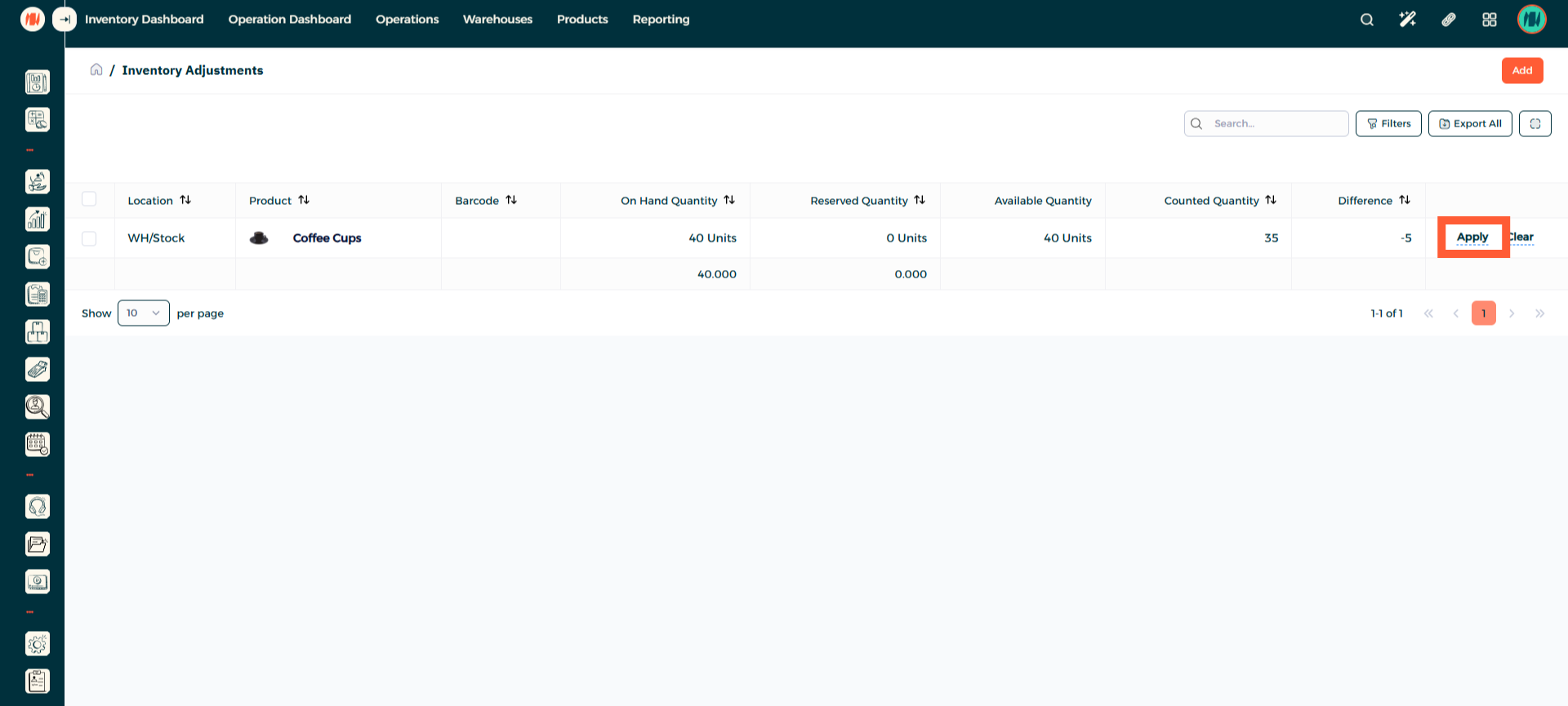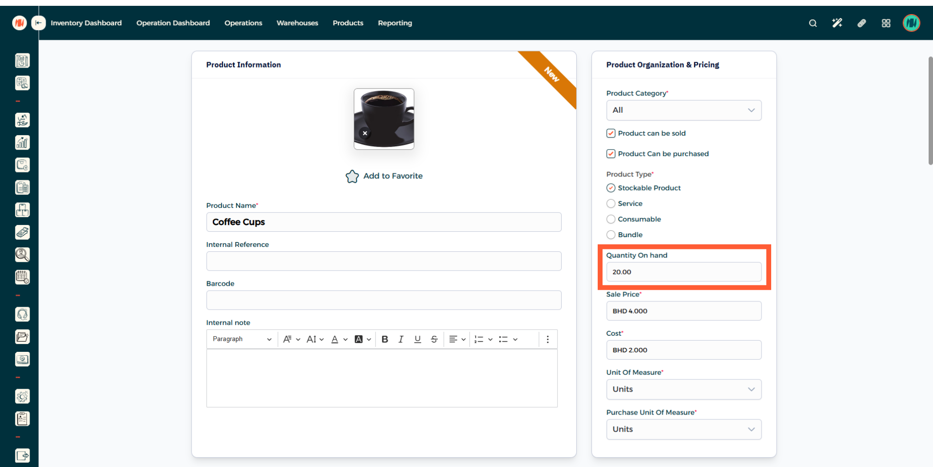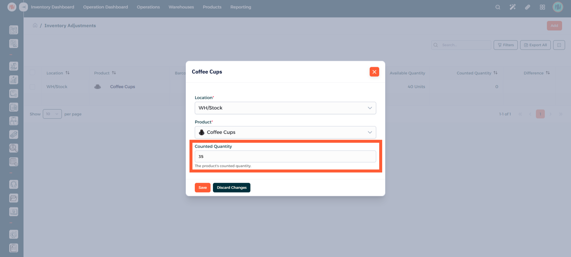 Add the counted quantity of the product. After that, press Save