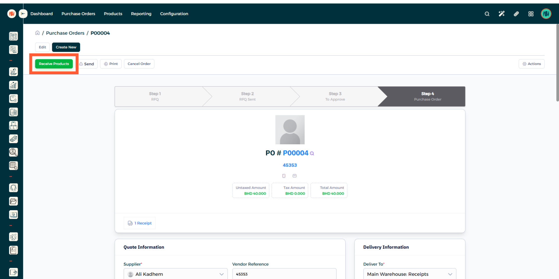 Step 16: Receive Products