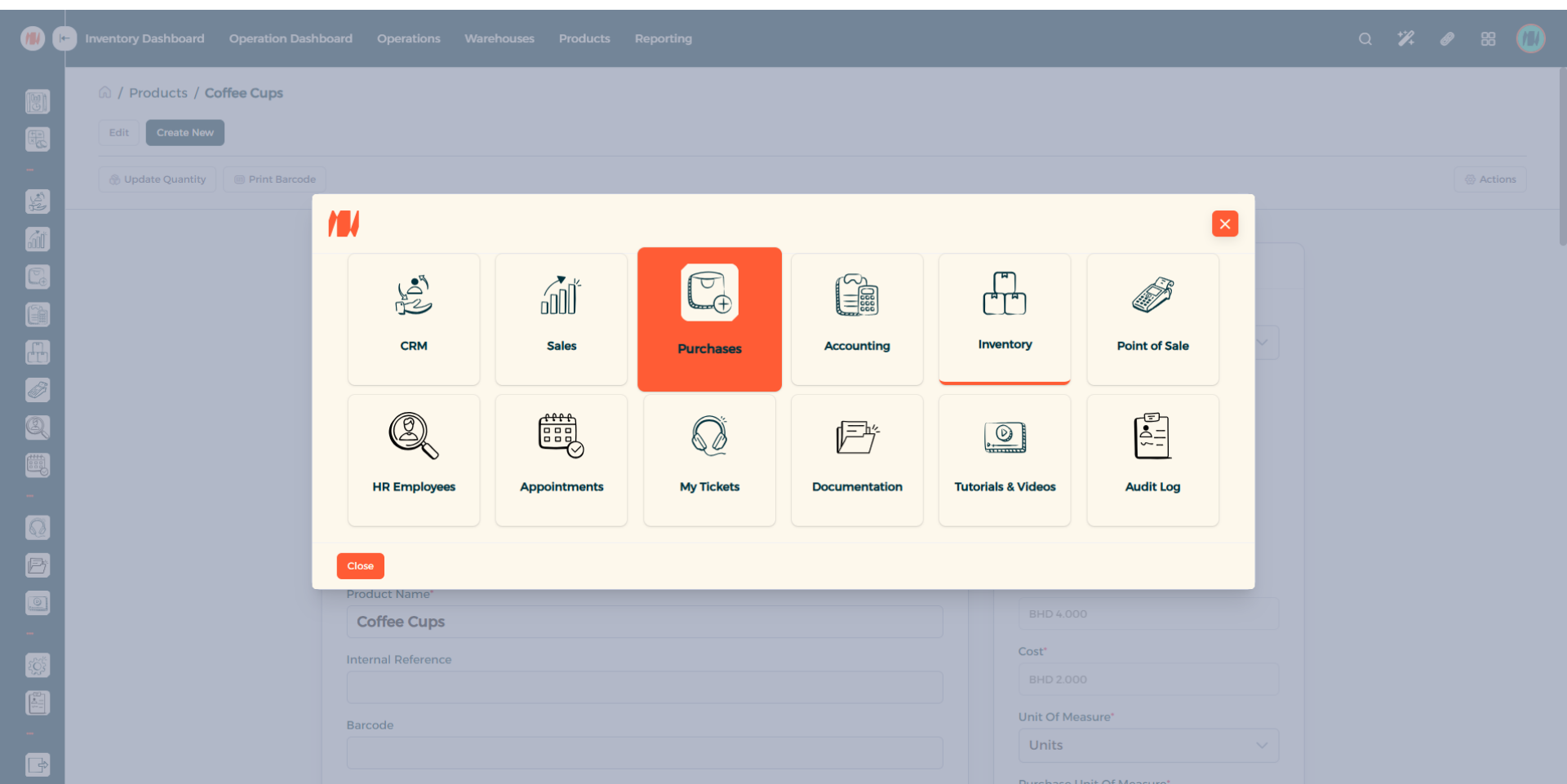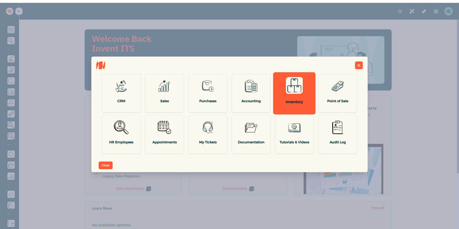 When that is done. Click on all apps in the top right corner. Then Select Inventory.