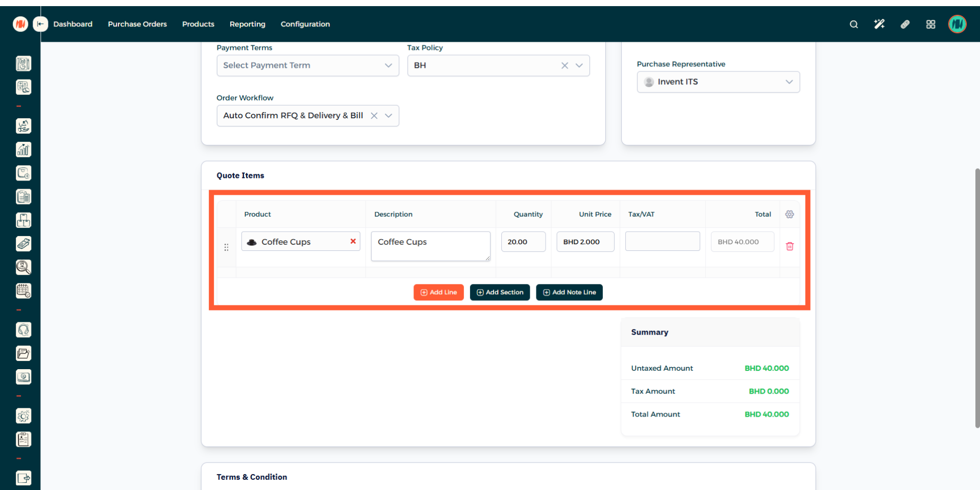 Step 11: Add Purchase Order